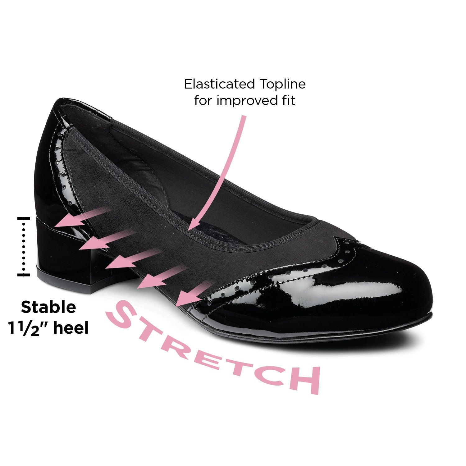 • Escarpin intelligemment conçu, avec des panneaux extensibles pour un confort et un ajustement améliorés. Les détails brogue ajoutent une touche classique.